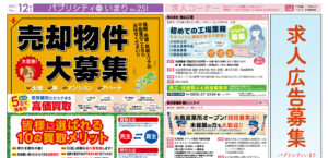 毎月第3土曜日に新聞各社の朝刊に折込を行なっております。お得で耳寄りな情報盛りだくさんの集合チラシです。次号は12月20日(土)発行です!お楽しみに!